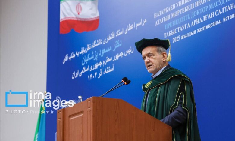 به گزارش خبرگزاری خبرآنلاین، مسعود پزشکیان در سخنرانی خود در جمع اساتید، پژوهشگران و دانشجویان دانشگاه نظربایف، ابراز خرسندی کرد که در مرکزی حضور یافته است که سالها به عنوان یکی از مراکز علمی برجسته منطقه در حوزه علوم پزشکی شناخته شده است.